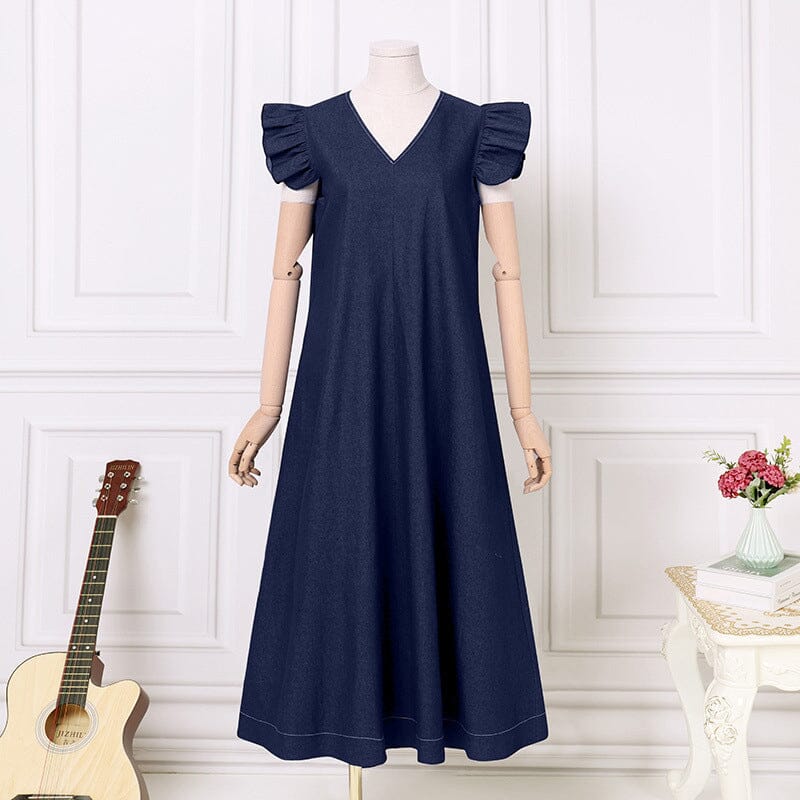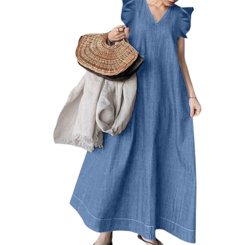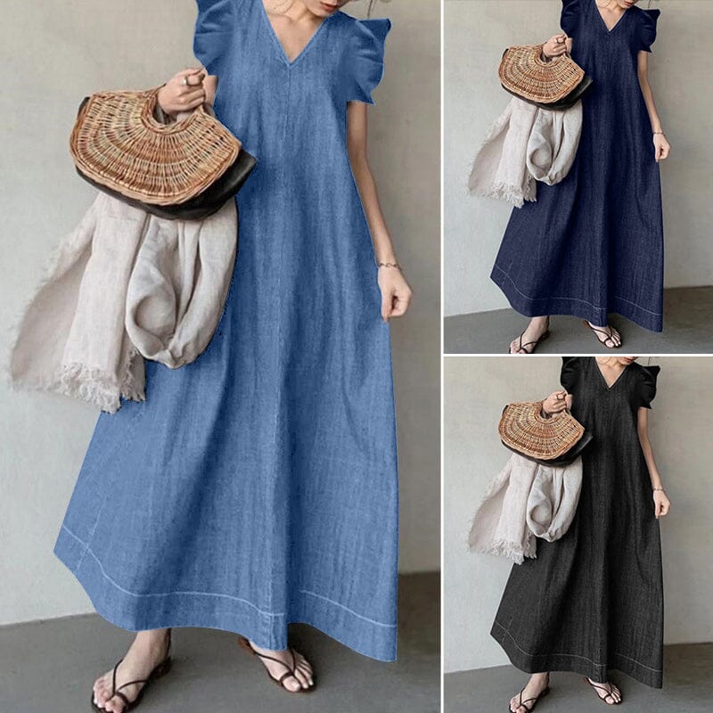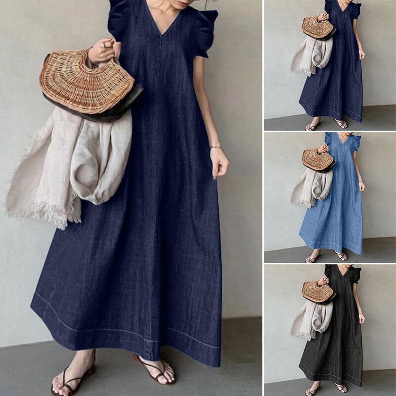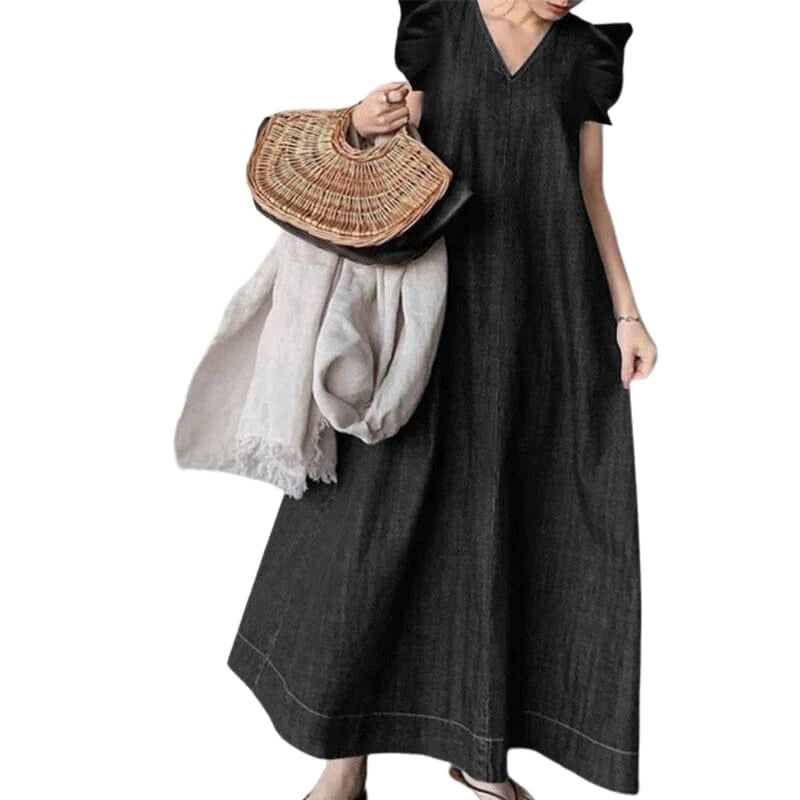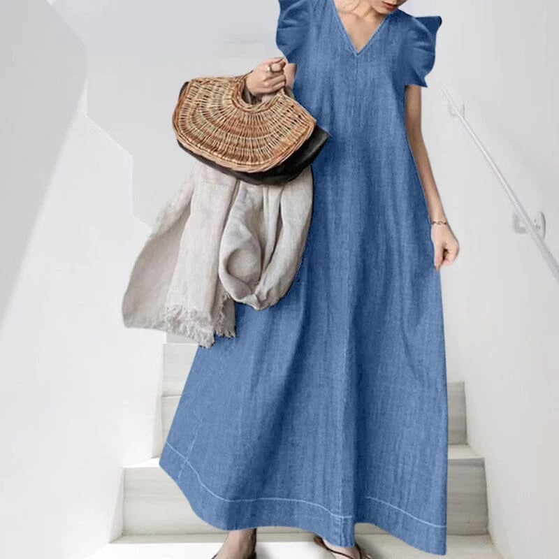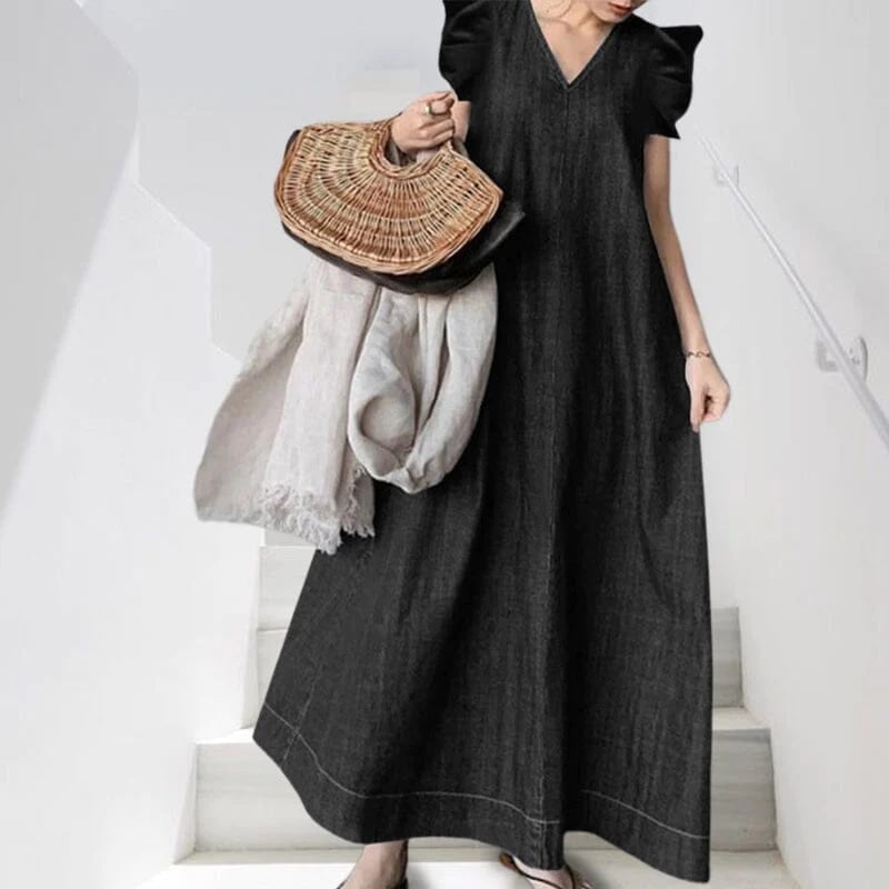 1×dlouhé džínové šaty s výstřihem do V