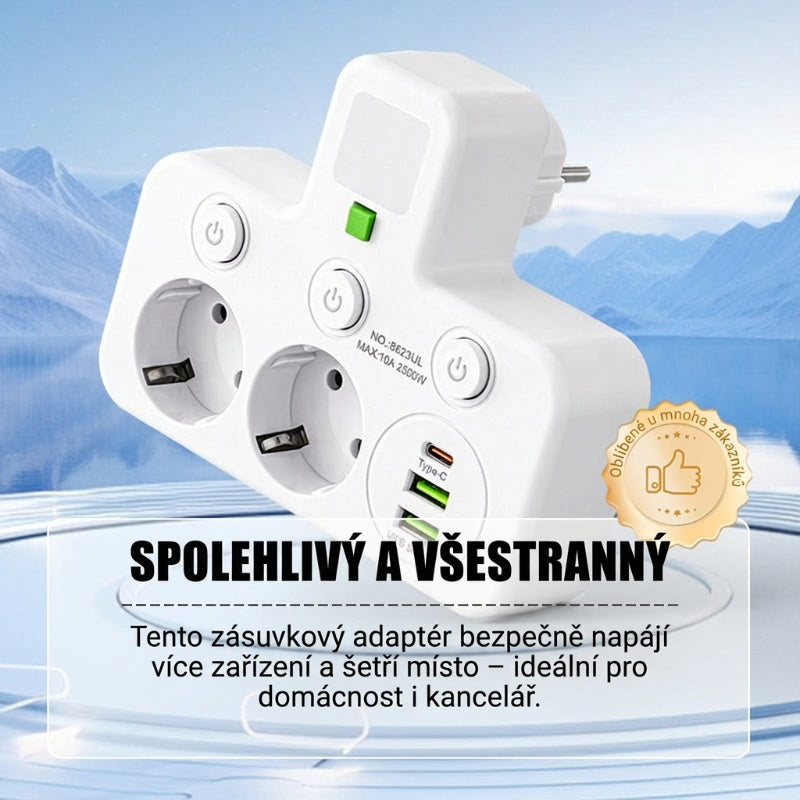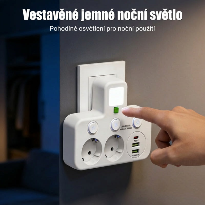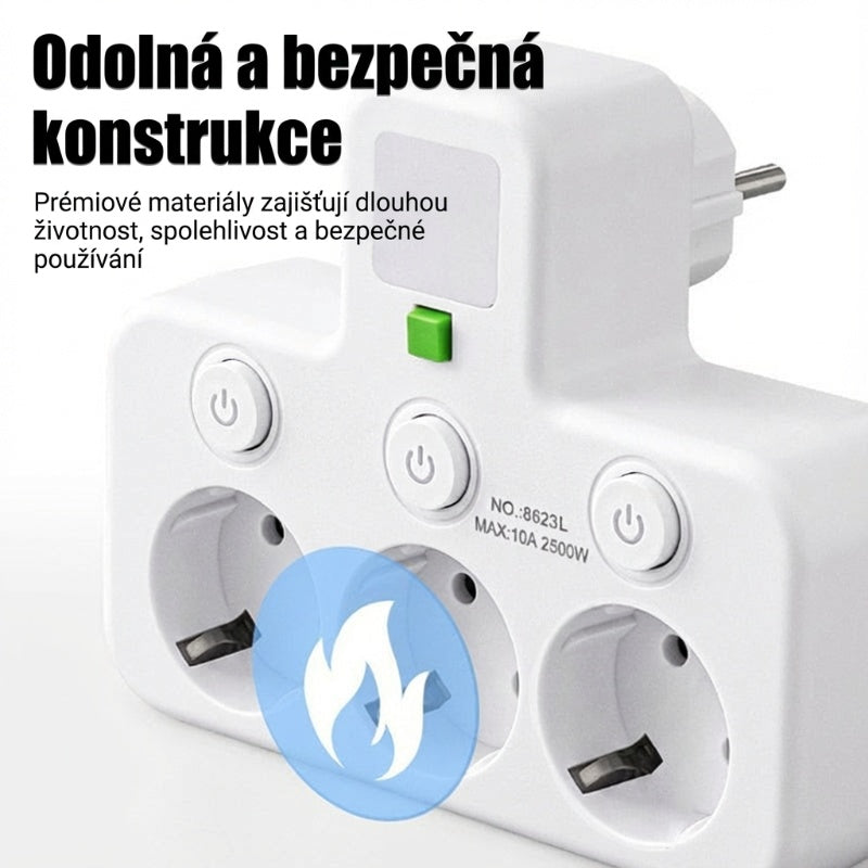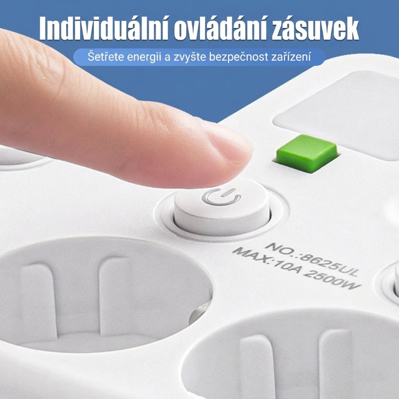 INDIVIDUÁLNÍ VYPÍNAČE: Každá zásuvka má svůj vlastní nezávislý vypínač a LED indikátor. To vám umožňuje přesné ovládání vašich zařízení, zvyšuje bezpečnost a pomáhá šetřit energii vypínáním nepoužívaných zásuvek.