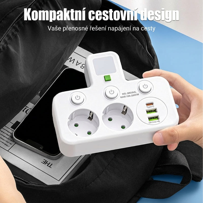 KOMPAKTNÍ DESIGN VHODNÝ NA CESTOVÁNÍ: Díky elegantní a lehké konstrukci je vynikajícím společníkem na cesty. Snadno se vejde do tašky nebo příručního zavazadla, takže budete mít vždy dostatek napájecích zásuvek pro všechna svá zařízení na cestách.